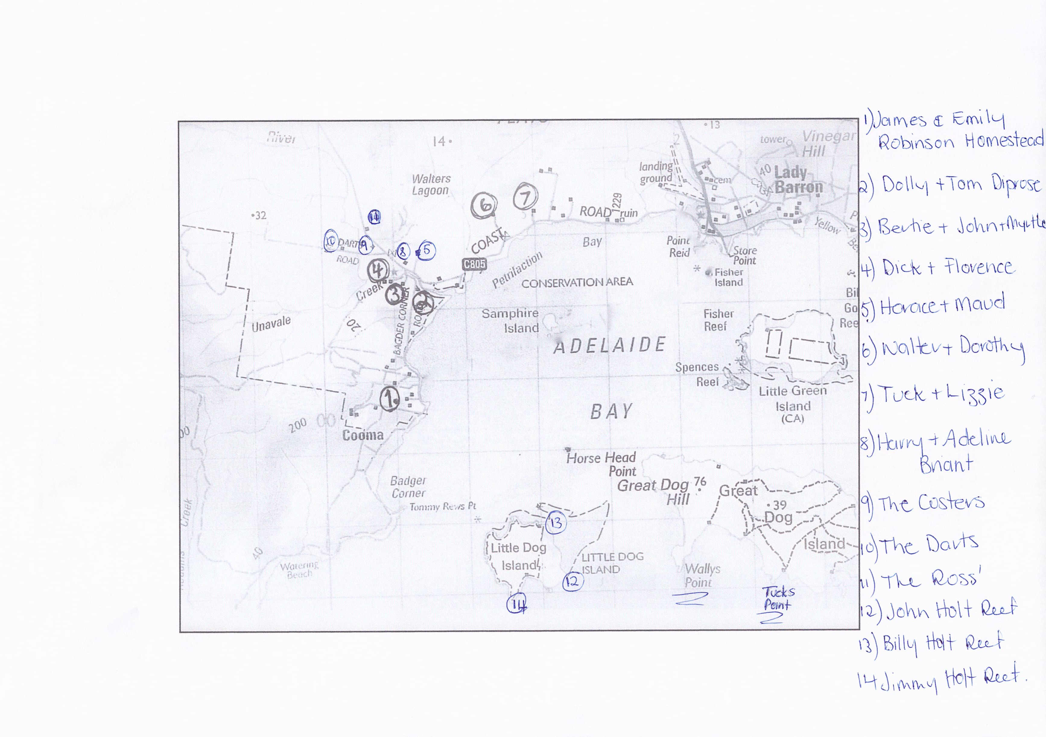 My siblings and I were raised at Samphire and Badger Corner and the Briant Homestead is still very much part of our lives. We also spent a lot of our early lives at the Robinson Homestead with Mr and Mrs Riddle who bought the home after Emily and James died, a long time before Dad was born. How lucky to have had Mr and Mrs Riddle in our young lives and how fortunate their home was so connected to our Robinson history. We were lucky to grow up surrounded by our Grandmother Maud, Great Aunts, Uncles and Cousins and lived the perfect carefree childhood over looking Adelaide Bay.