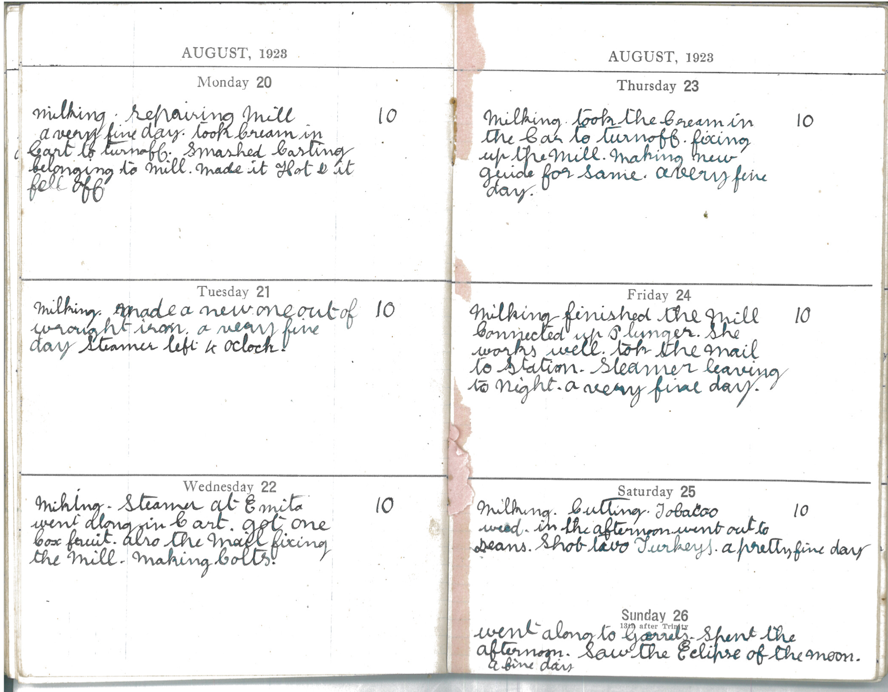 5) ‘At length we bethought ourselves of the bridegroom at his farm far away, and of his large cutter. Perhaps he would take us back to the mainland. So we departed once more for Badger Corner. That night Mr. James Holt fed us wallaby and gave us the best accommodation he possessed. I slept that night on six chairs, and slumber was sweet. The next day we tried our utmost to reach the school-house. The bridegroom left his bride and sailed the “Furneaux” to the best of his ability, and Charles Stephens ably seconded him, but we took 19 hours getting over 15 miles of sea. Anchored that night, and waiting for the tide to turn, I saw a sight, which made us explode with laughter. It was about 3 a.m., and bitterly cold. We had laid down in our clothes, prepared to sail at the first opportunity, and when I put my head up on deck I beheld Mr. Briant cowering over a fire-pot, and looking the picture of misery. So miserable was his appearance that there was nothing left to do but to woken the echoes on the dim shores hard by with laughter as I pointed to the “happy bridegroom.” Nothing could really have been more brutal, since it was I who had torn him from his home. But at length our day came, and on Friday, June 29. After six days of waiting (I hope of patience too), the “Furneaux” started for Cape Portland. In 4 ½ hours we were in the boat harbor of the Cape, and in a short time we too (my boy and I) presented ourselves to Mrs. Bowne’s as occupants for a lodging.’