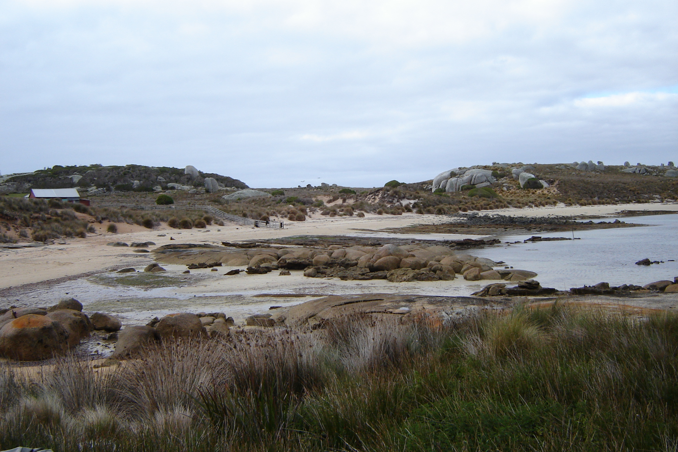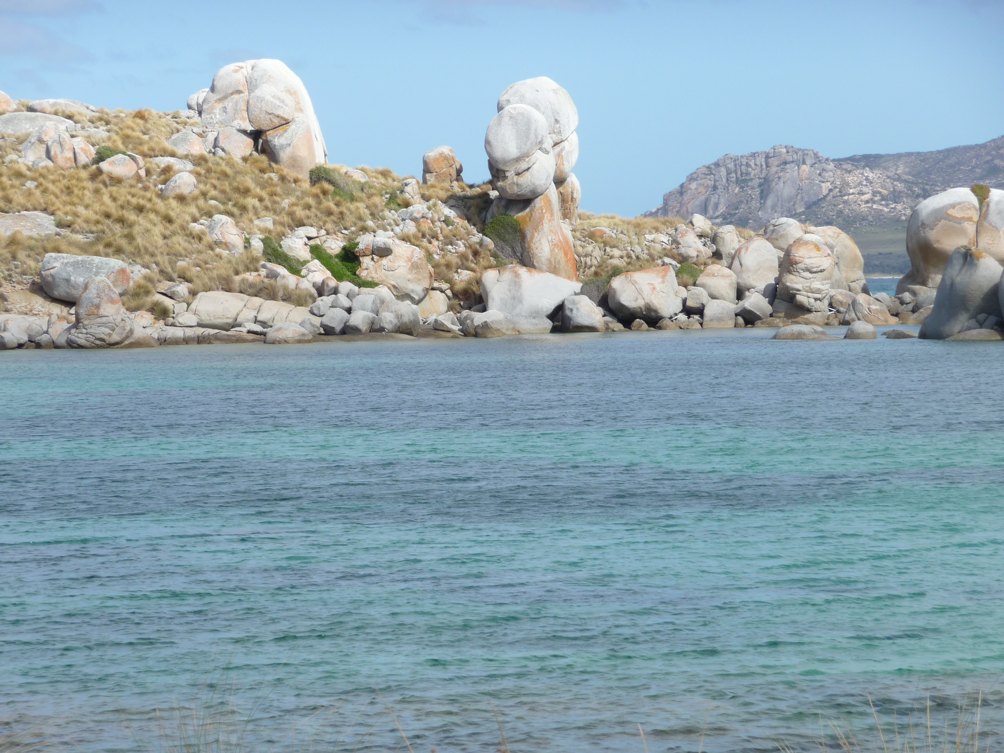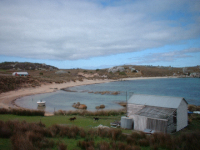 The hut and shearing shed are on the southern bay with a stunning outlook across to the unusual granite rock formations in the foreground of Cape Barren. Working on Woody: whilst sounds like fun, is, extreme, physical work, every thing carted on and off the boat via the beach, food and water, bedding, shearing equipment, generators, gas bottles, wool bales, dogs, even wood, Woody has not a single tree! It’s no wonder all the Robinson’s have crook knee’s.