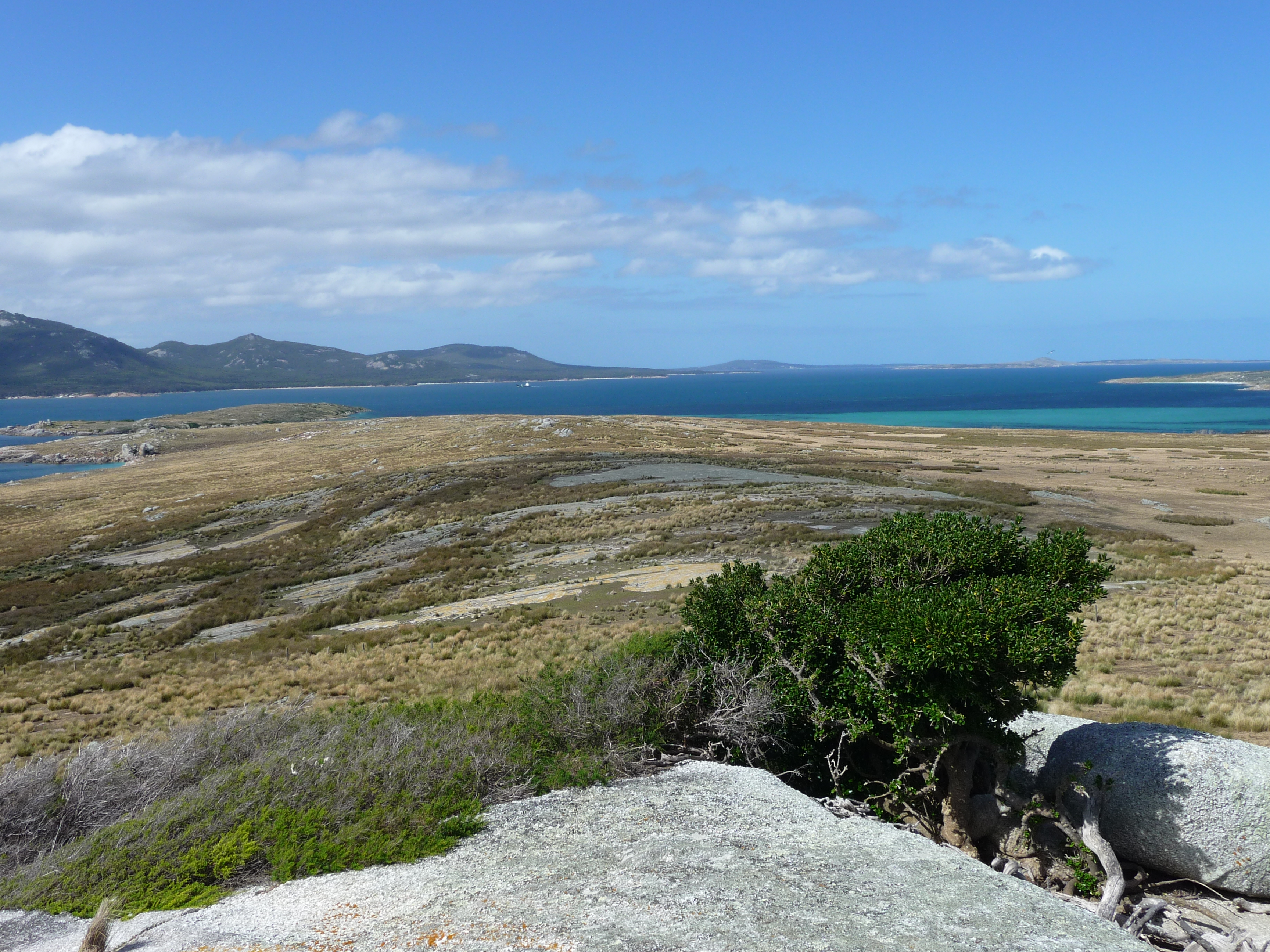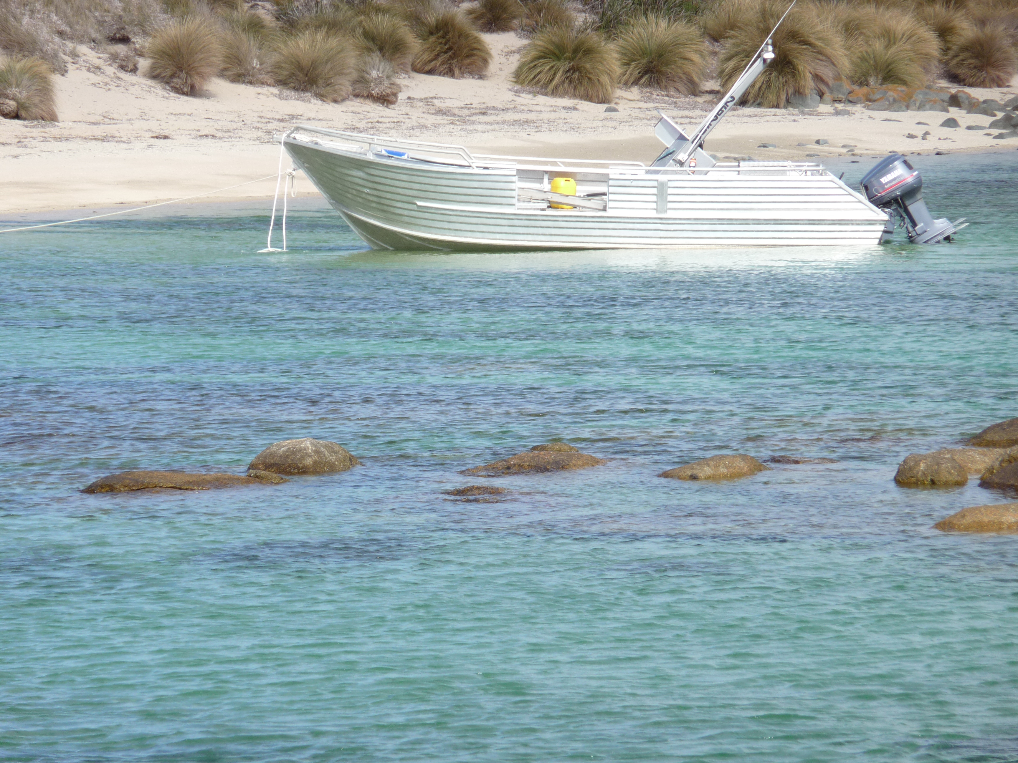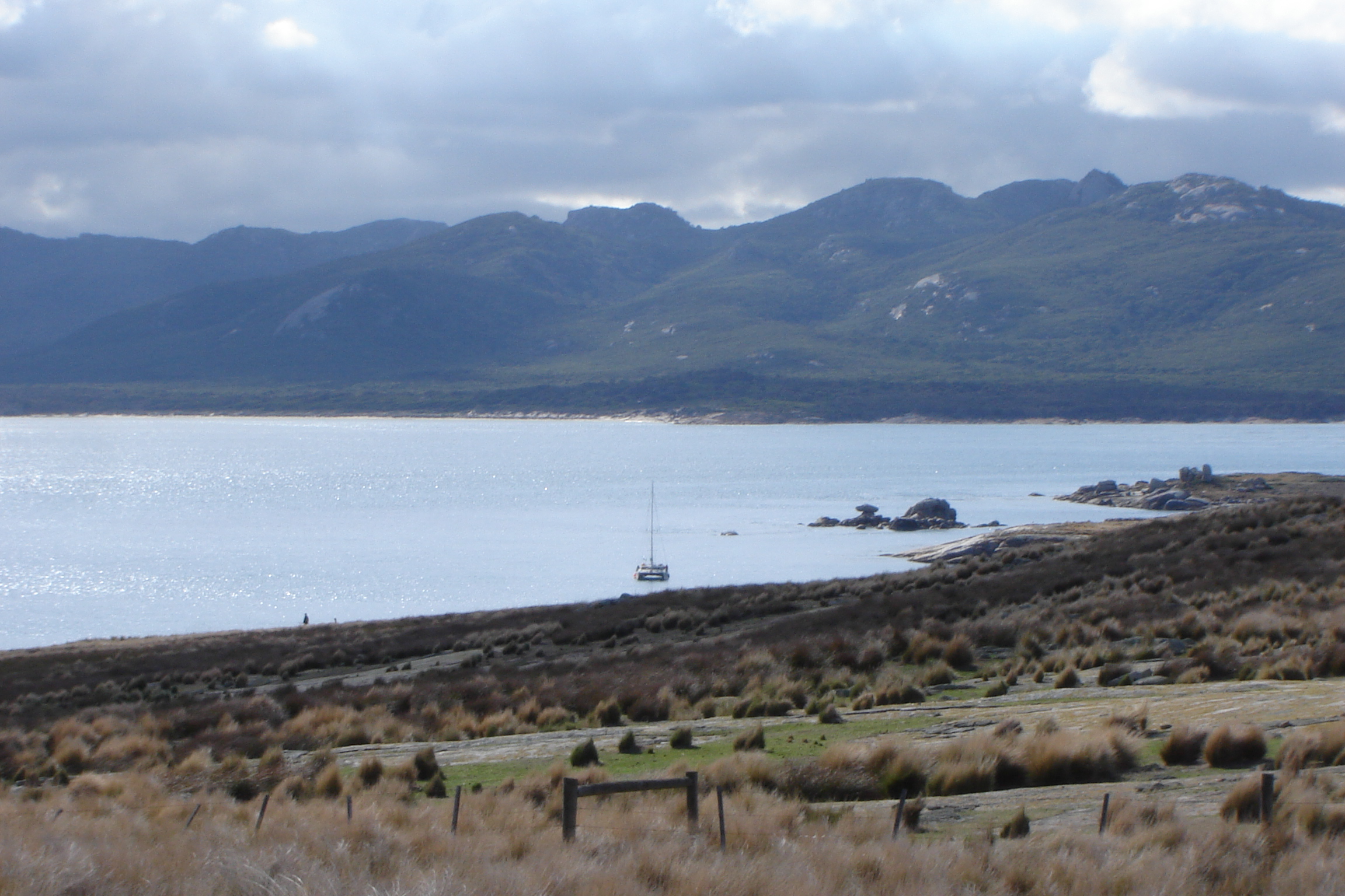 The hut and shearing shed are on the southern bay with a stunning outlook across to the unusual granite rock formations in the foreground of Cape Barren. Working on Woody: whilst sounds like fun, is, extreme, physical work, every thing carted on and off the boat via the beach, food and water, bedding, shearing equipment, generators, gas bottles, wool bales, dogs, even wood, Woody has not a single tree! It’s no wonder all the Robinson’s have crook knee’s.