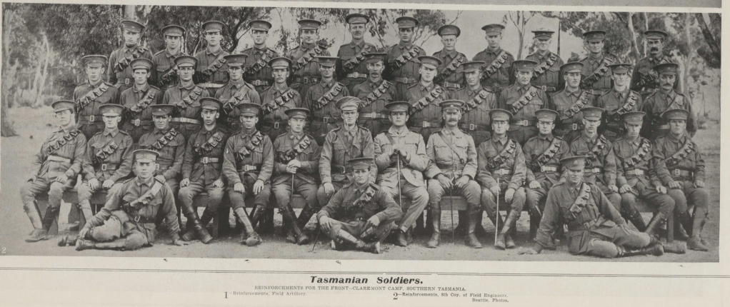 I found this photo of James hamming it up with his Tassie mates in New South Wales waiting to head to the Western Front, found by accident.