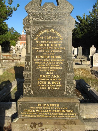 John Henry Holt Headstone CarrVilla Published July 16, 2014 at 375 × 500 in John and Maryanne Holt (nee Akerman) ← Previous Next → Headstone or John & Maryanne Holt: also son Ernest and daughter Elizabeth