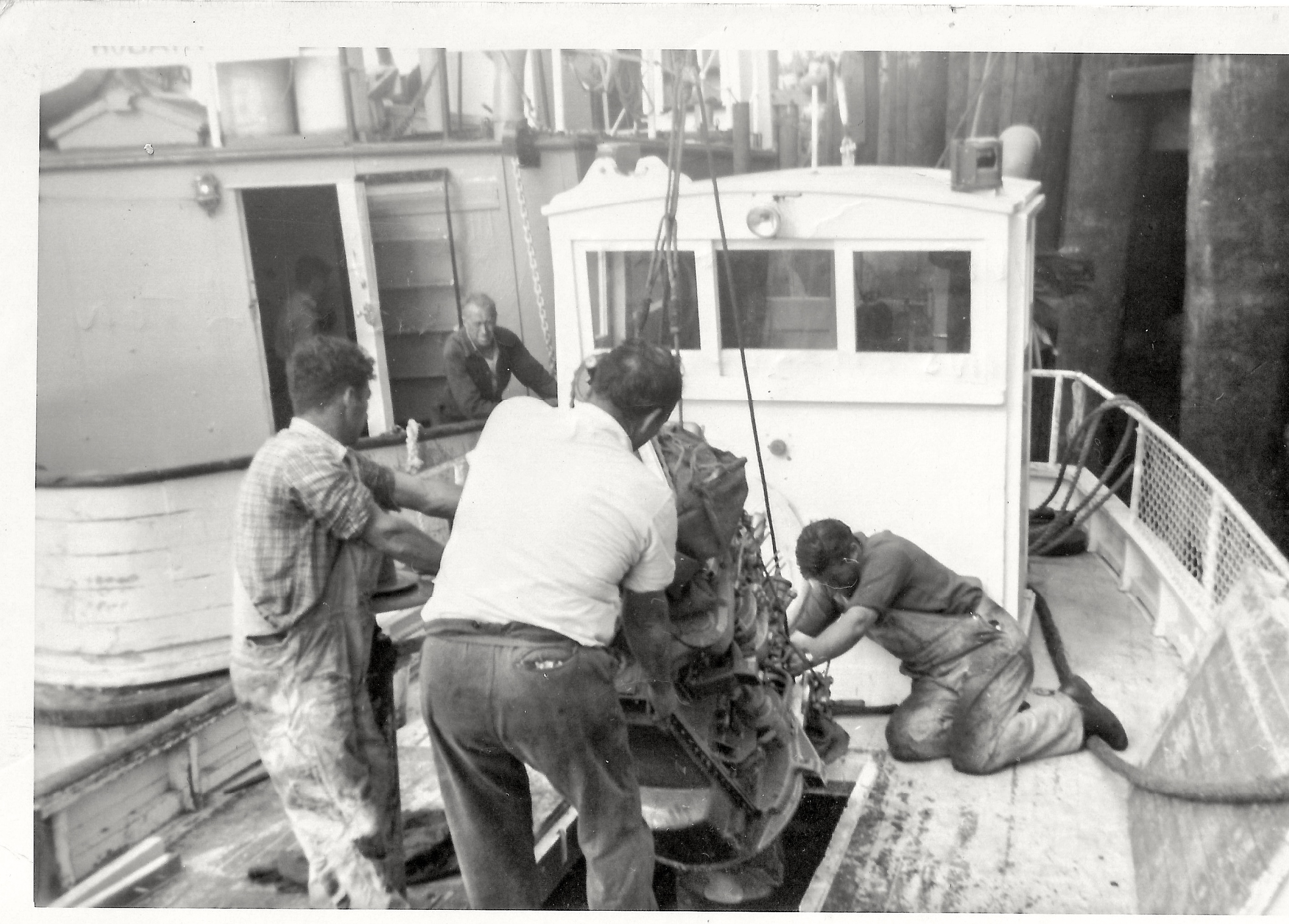 New engine being put into the Alicia – Launceston Published December 6, 2014 at 2832 × 2030 in Walter and Doris Robinson’s family photo’s ← Previous Next → The engine taken out was a Ruston, bought by Walter Briant who used it to run his welding plant at his workshop on the Samphire.